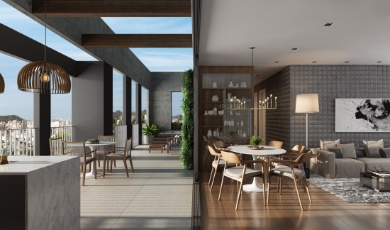 Cobertura projetada para quem gosta de ambientes integrados e com grande área de convivência/lazer, sem contar a linda vista e toda iluminação que esse projeto conferi.